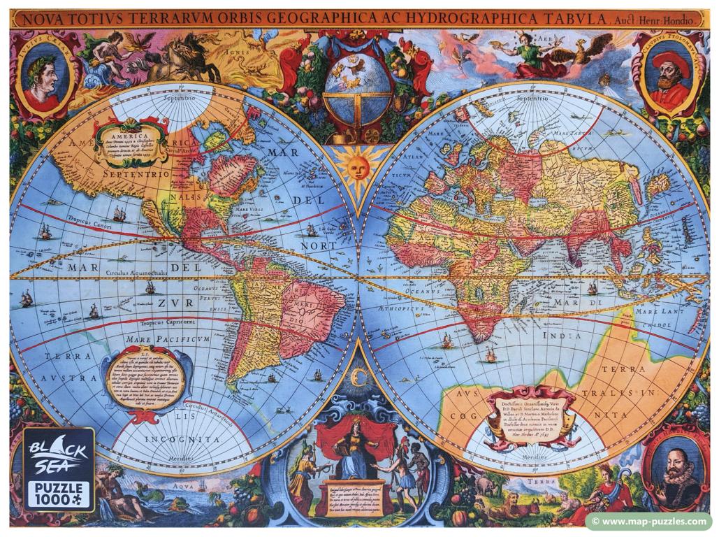 „A new geographic and hydrographic map of the whole world“, c1631-1641 by Henricus Hondius (1597-1651).