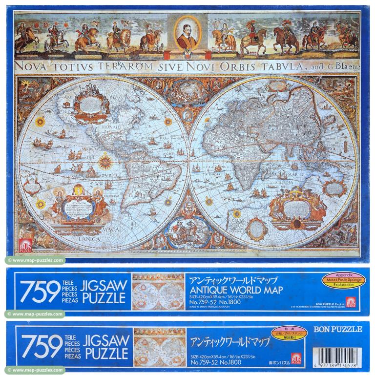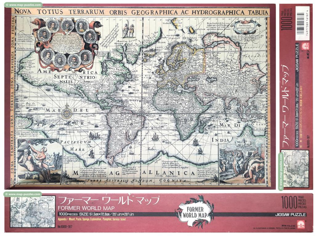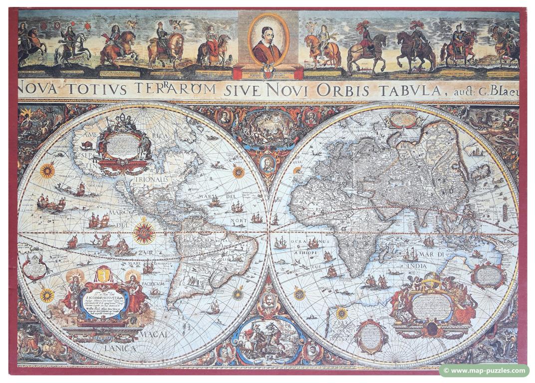 A private collection of modern jigsaw puzzles showing an antique world map.
