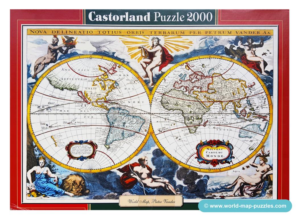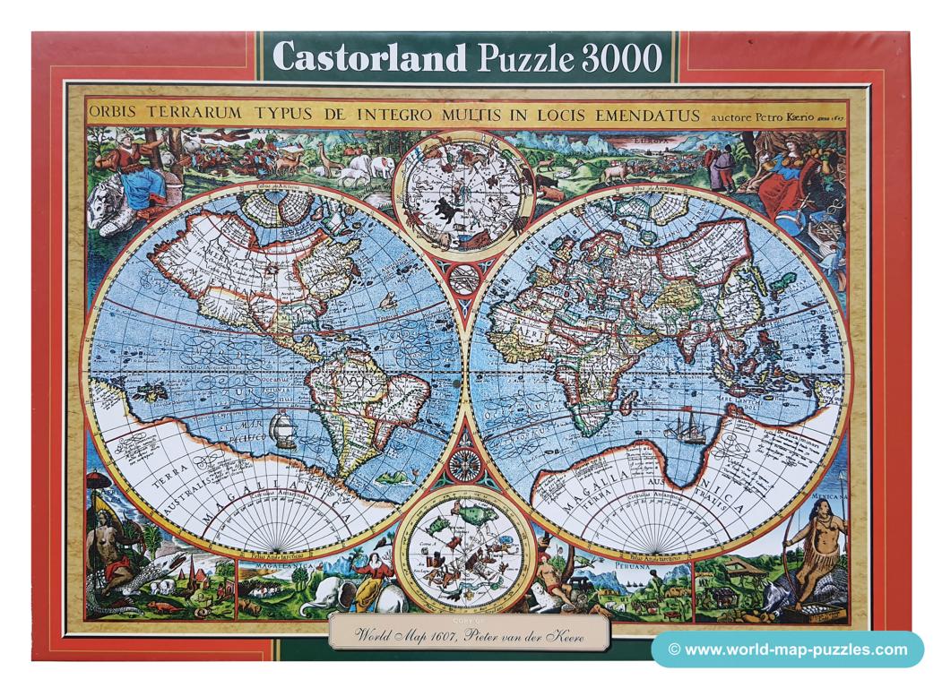 A private collection of modern jigsaw puzzles showing an antique world map.