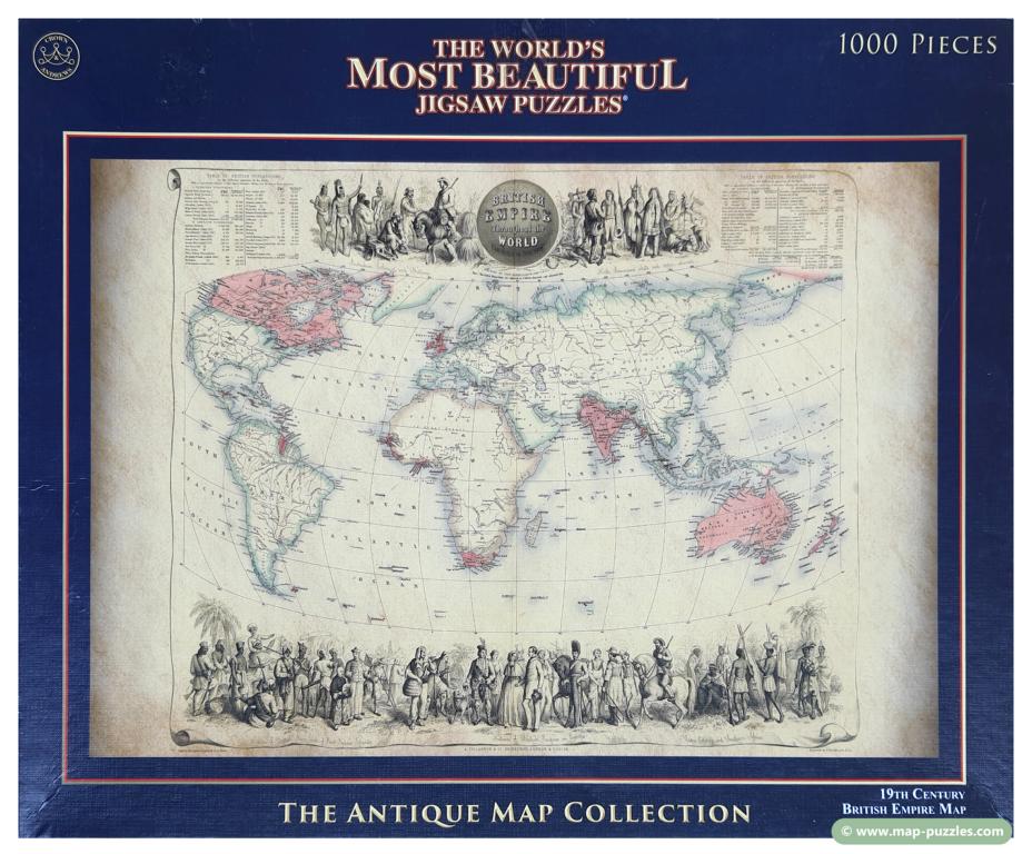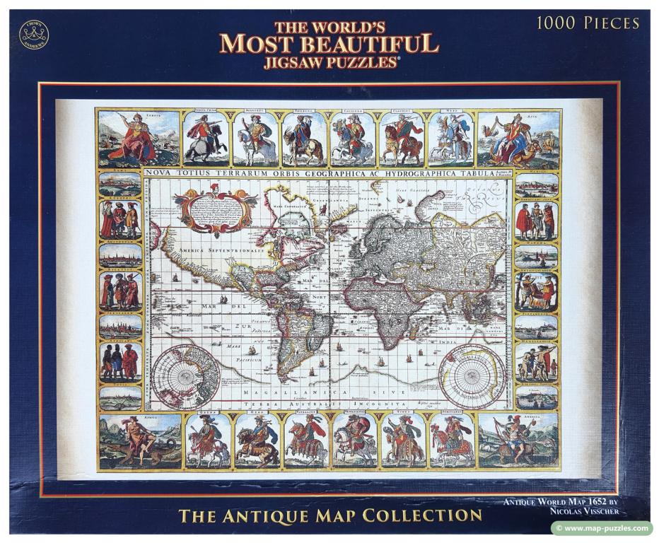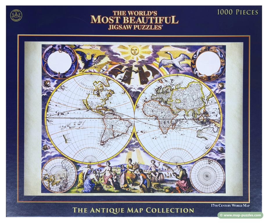 A private collection of modern jigsaw puzzles showing an antique world map.