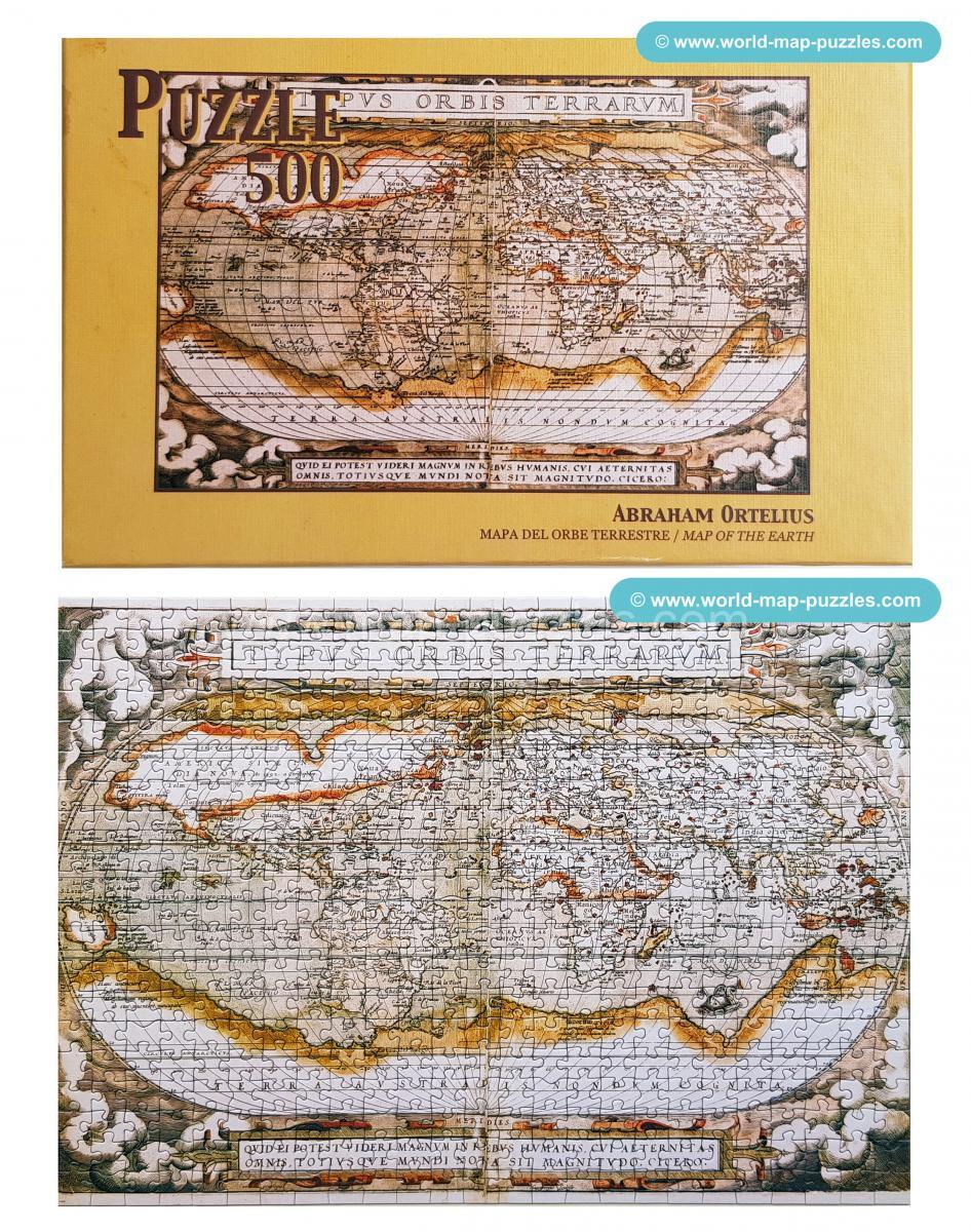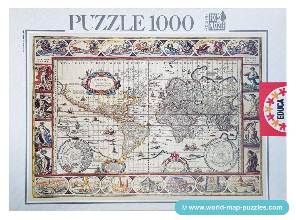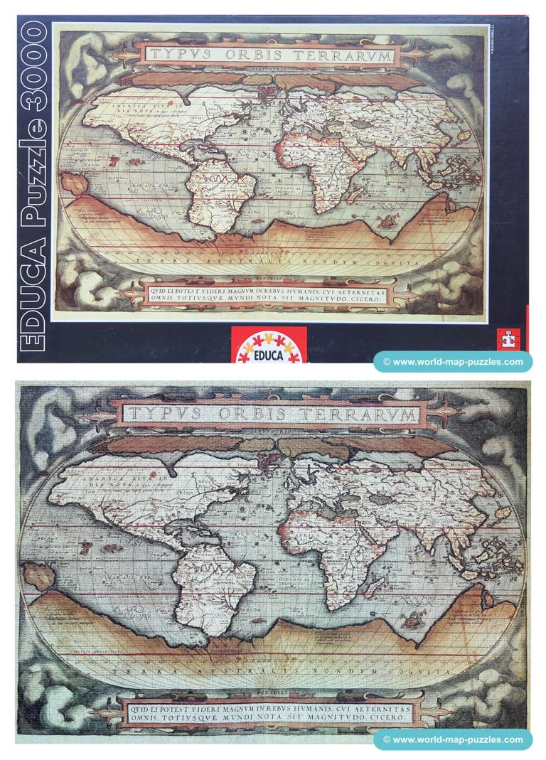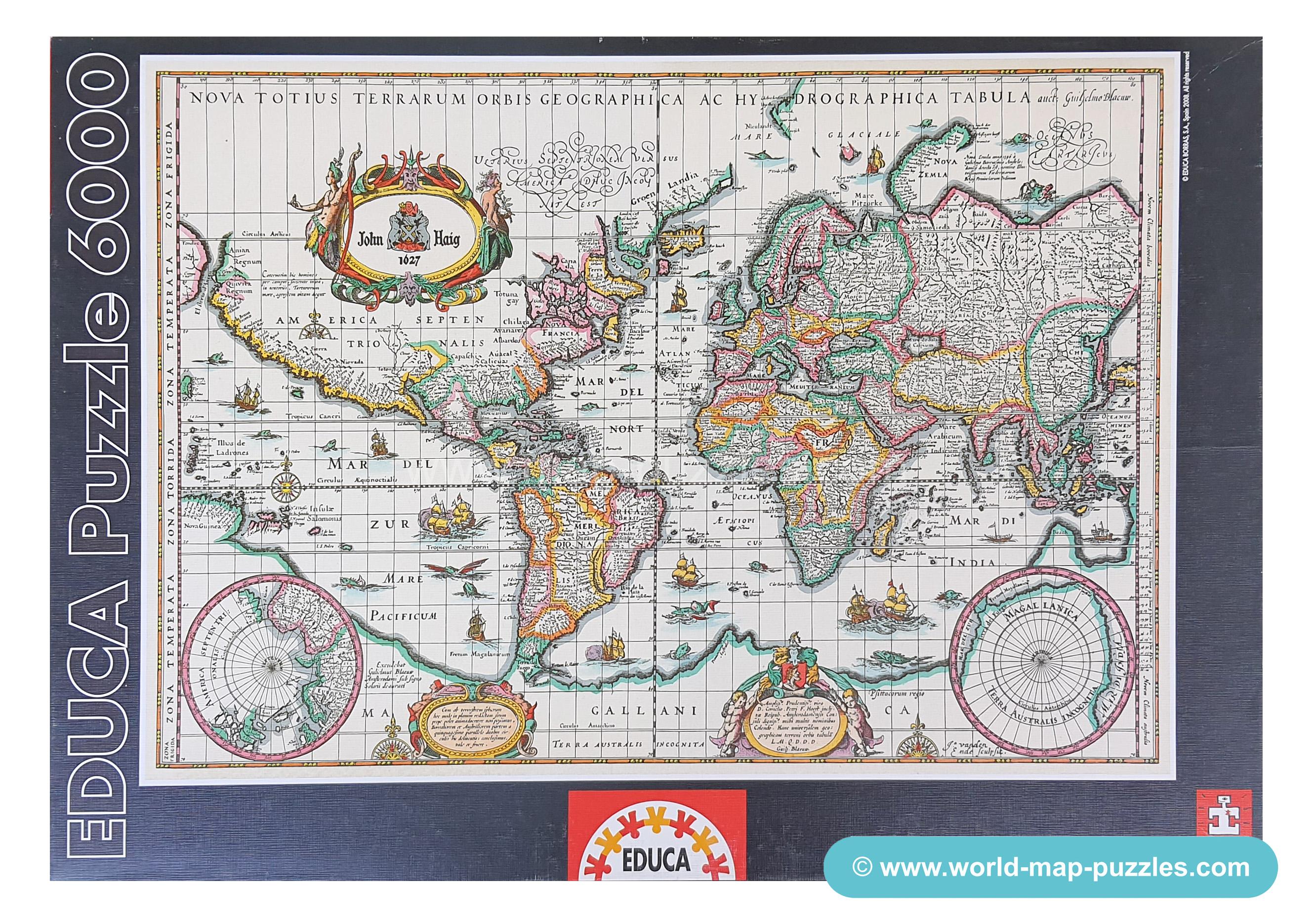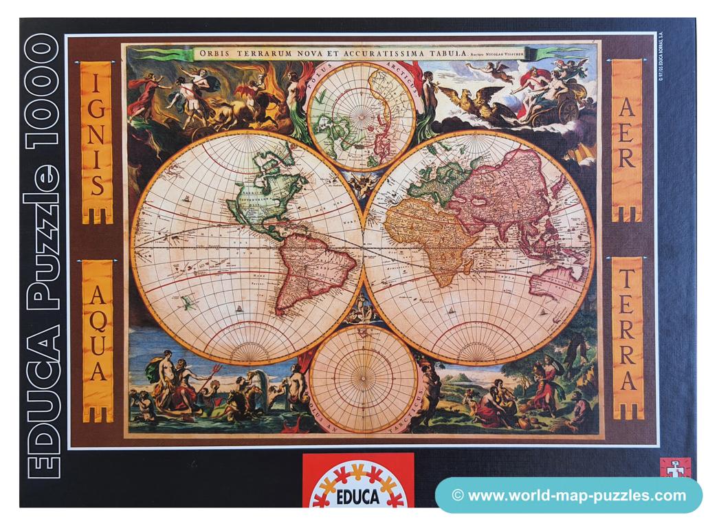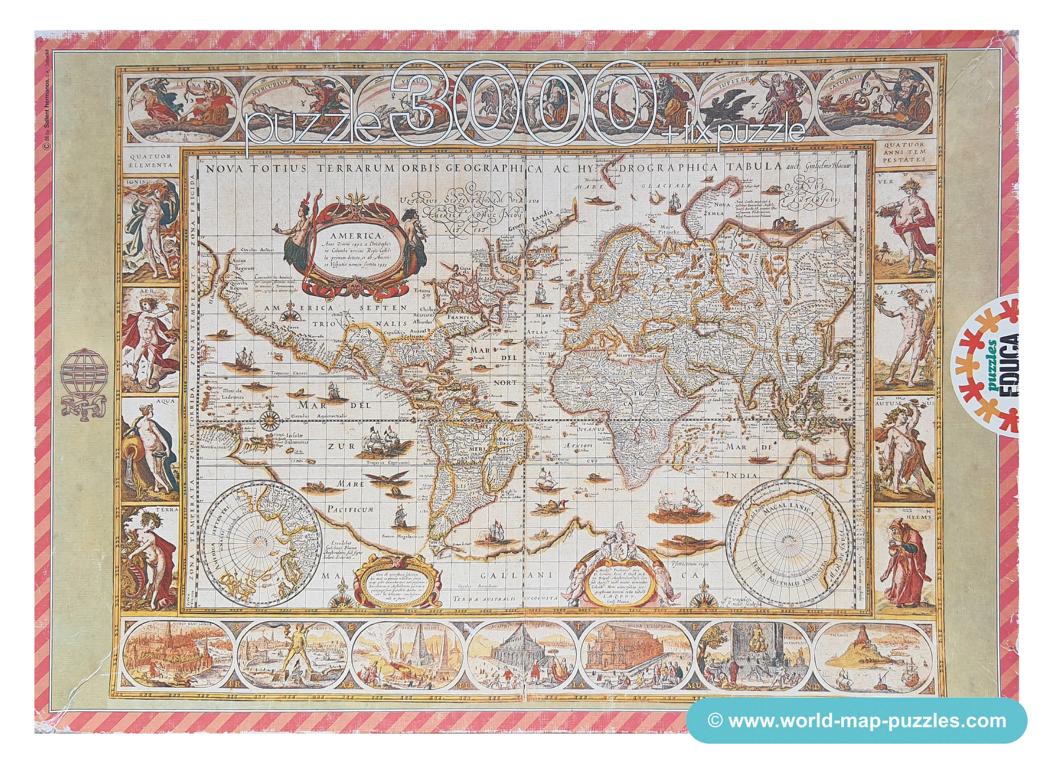 A private collection of modern jigsaw puzzles showing an antique world map.