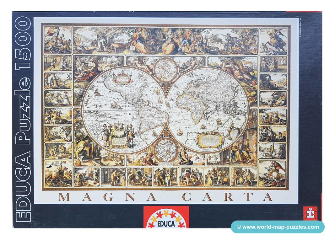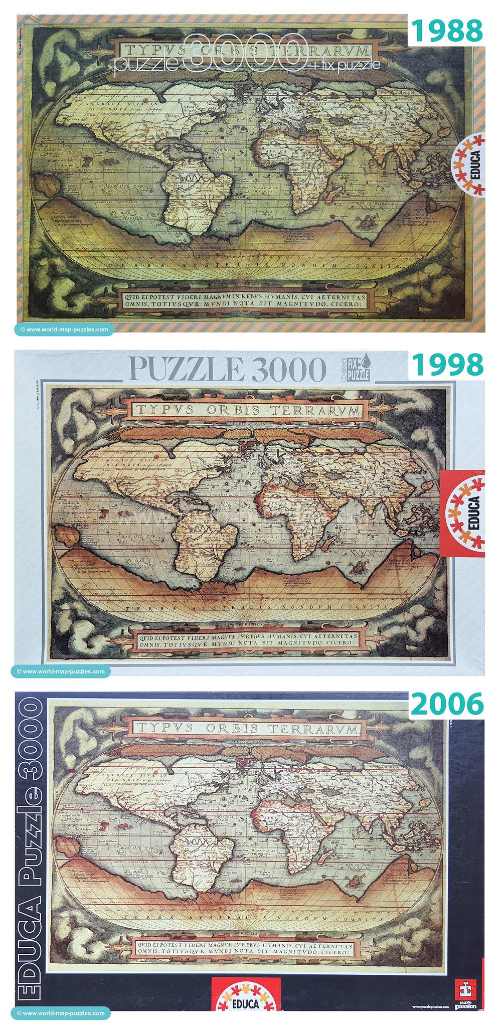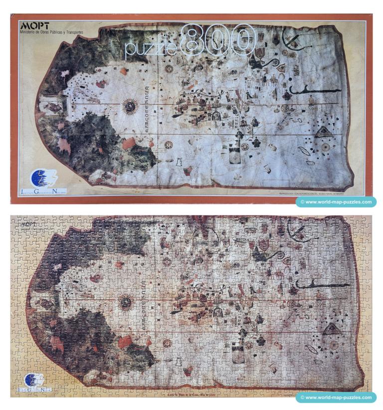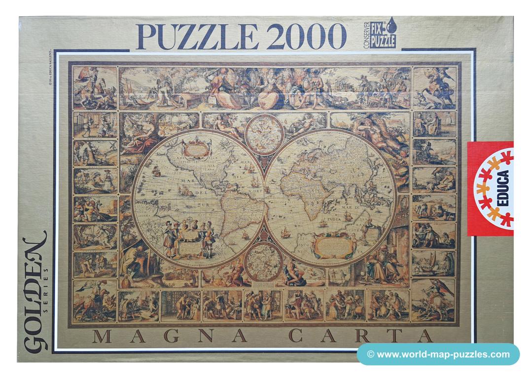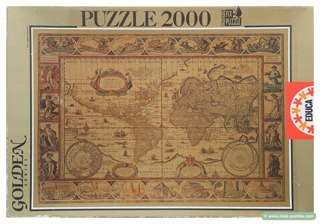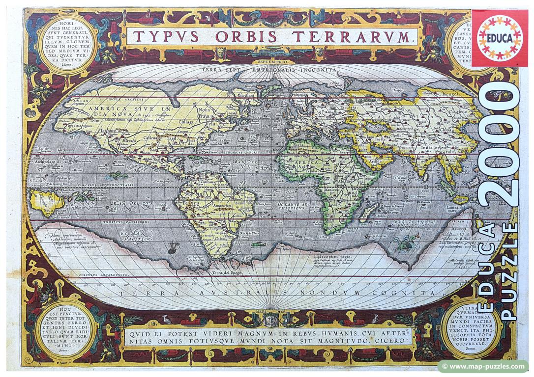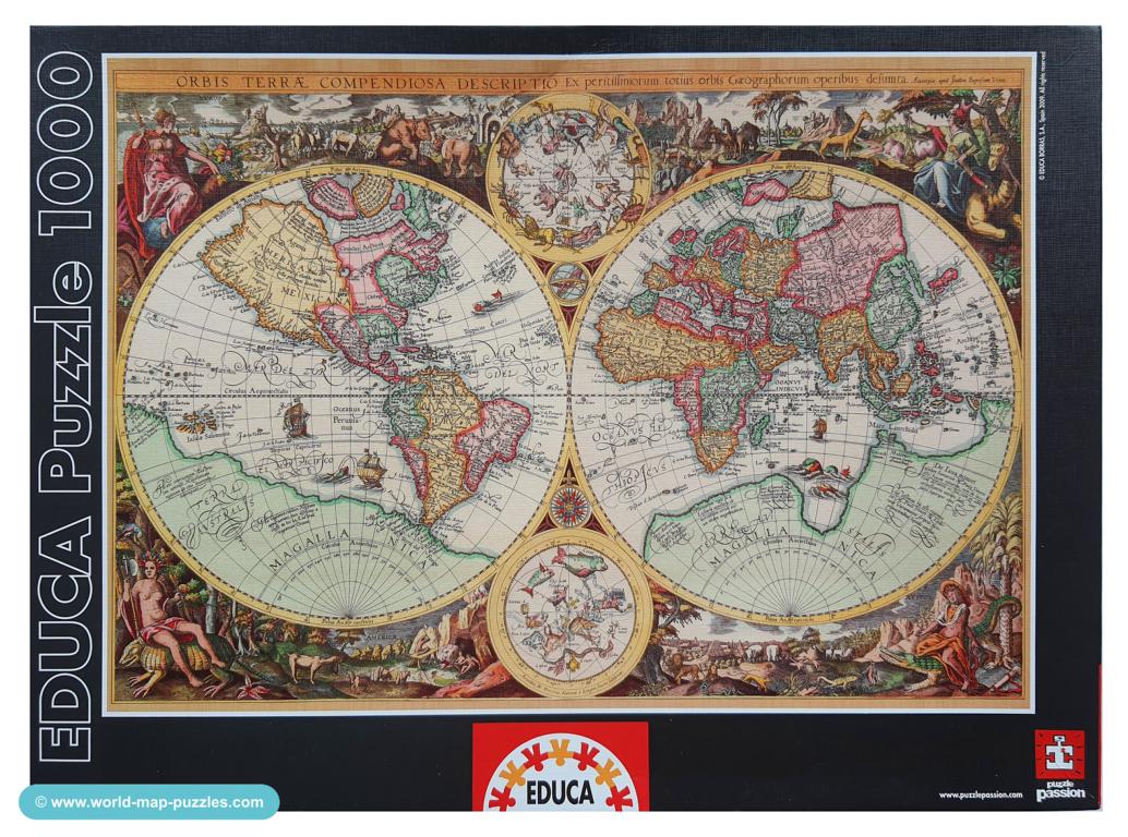 A private collection of modern jigsaw puzzles showing an antique world map.