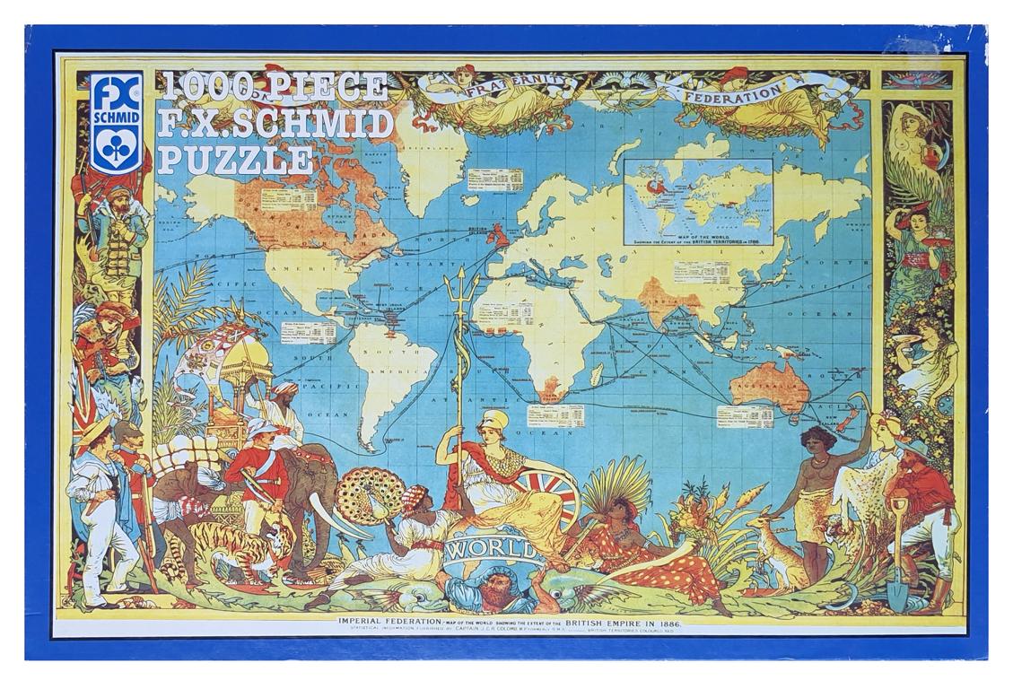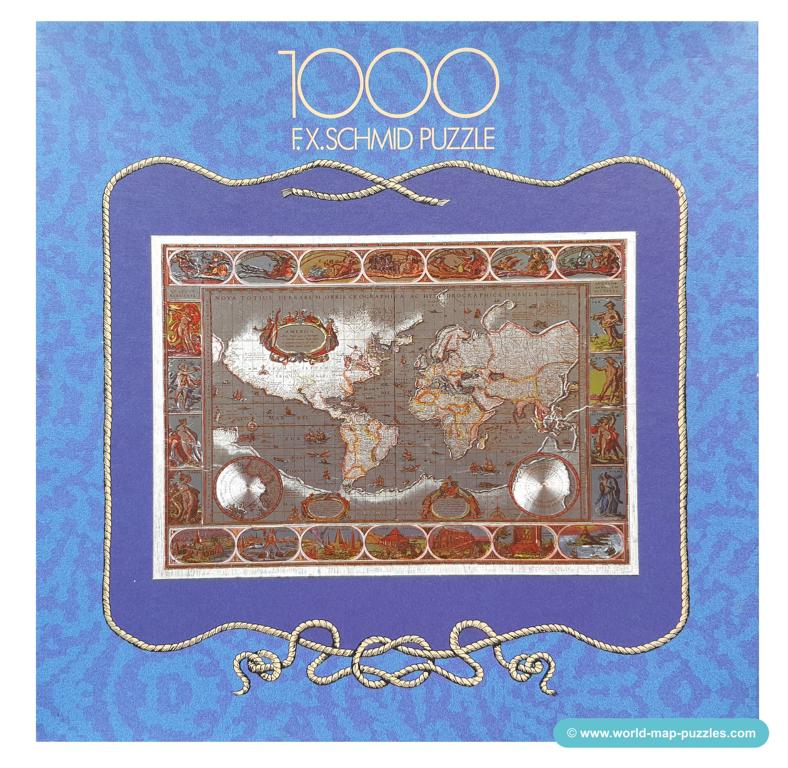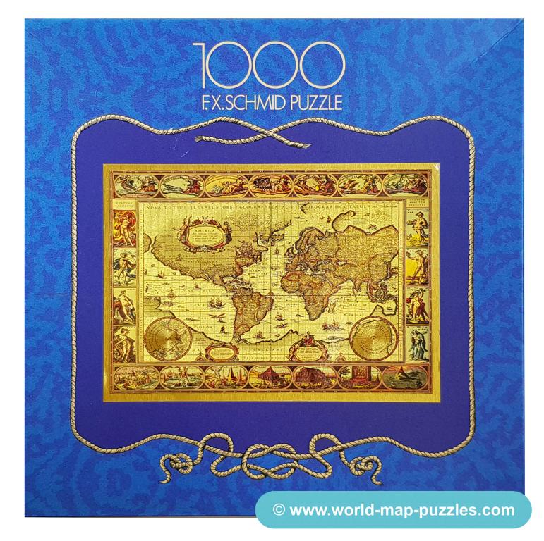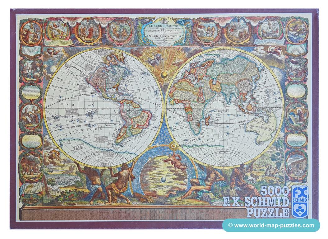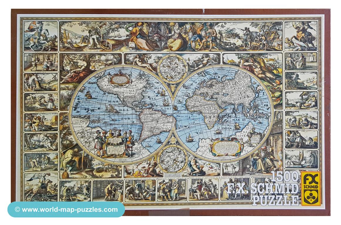 A private collection of modern jigsaw puzzles showing an antique world map.