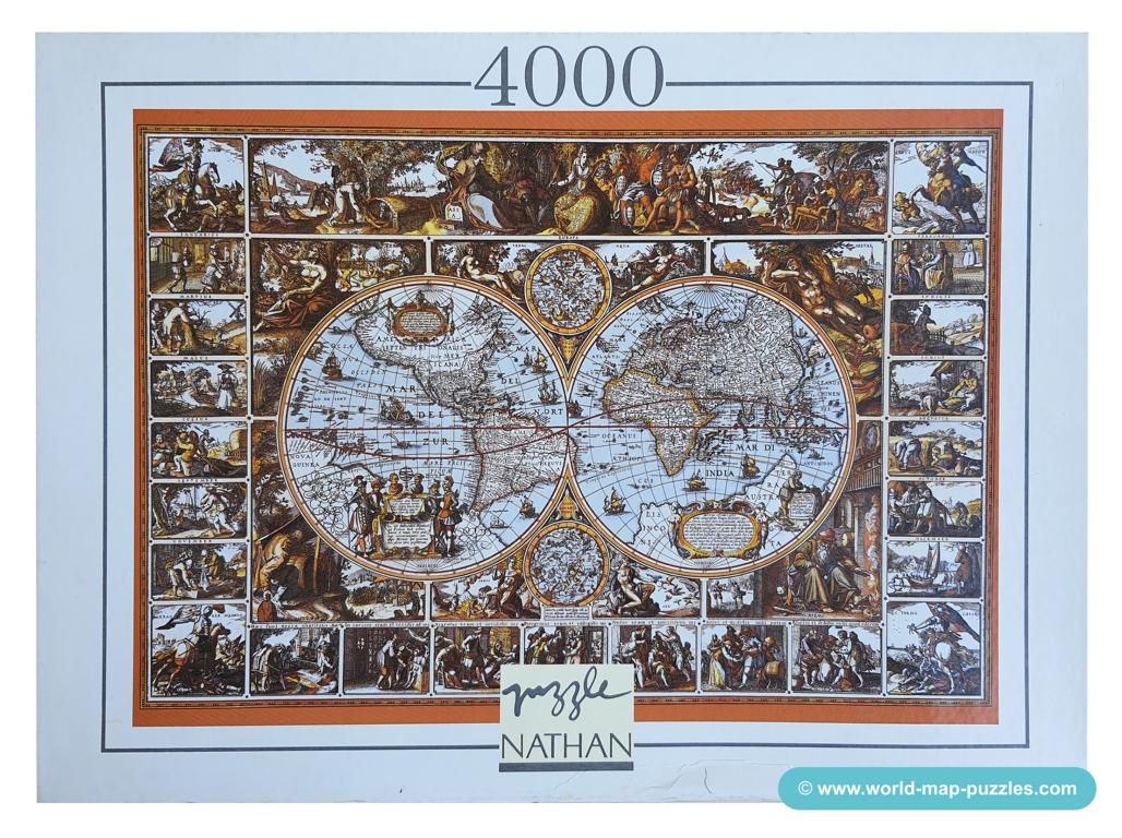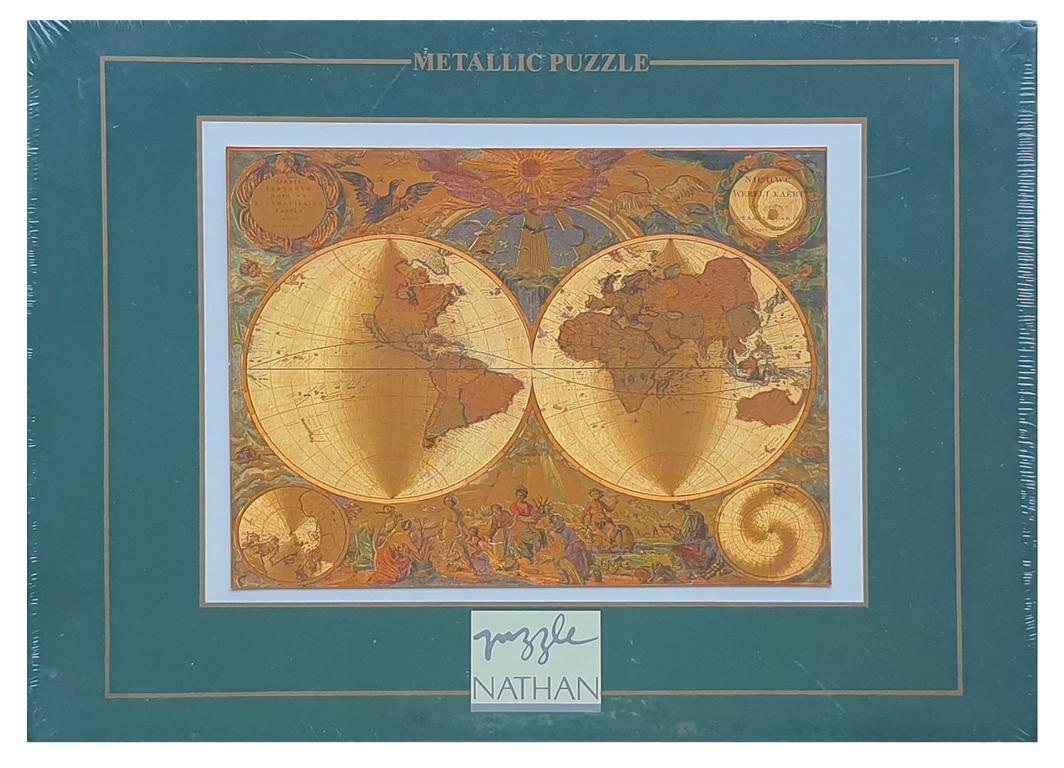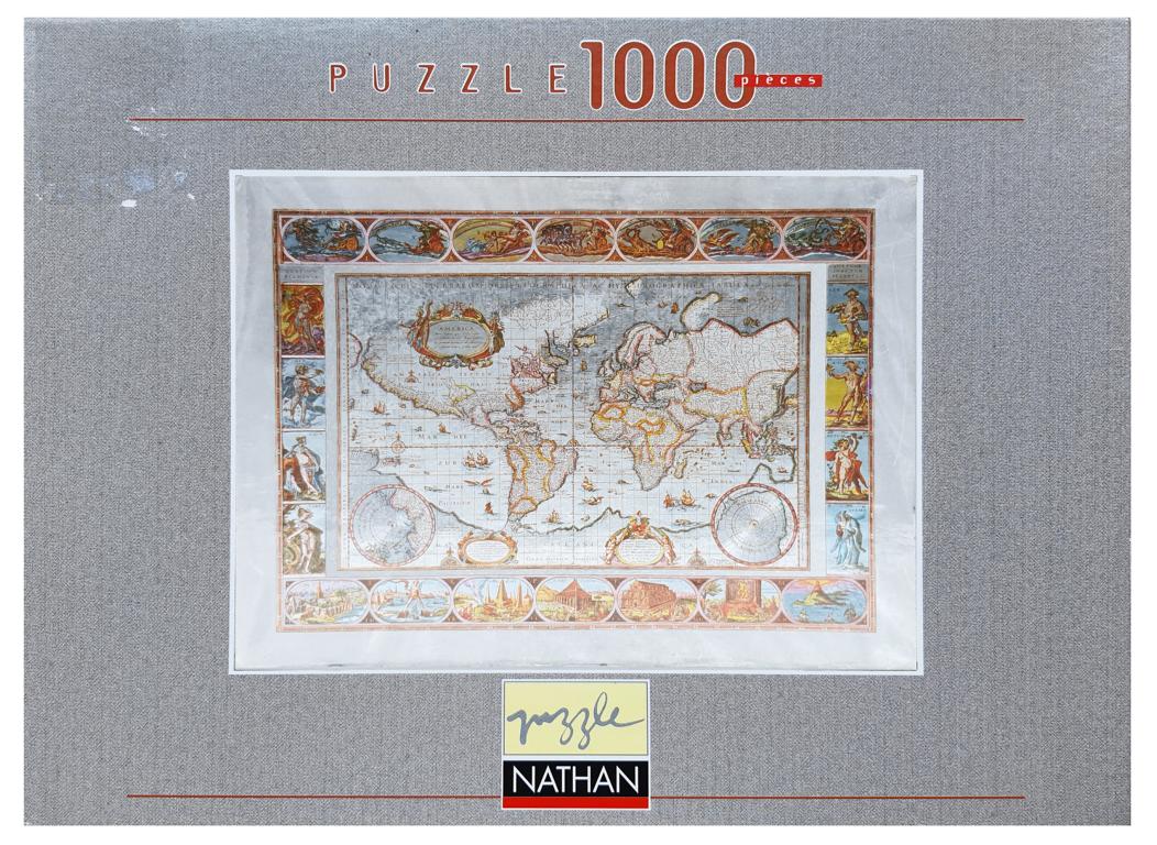 A private collection of modern jigsaw puzzles showing an antique world map.