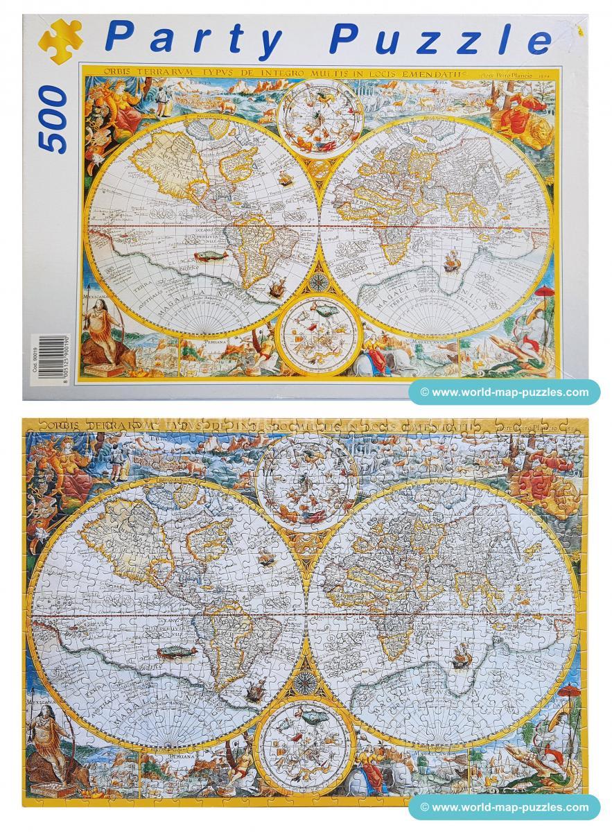 A private collection of modern jigsaw puzzles showing an antique world map.