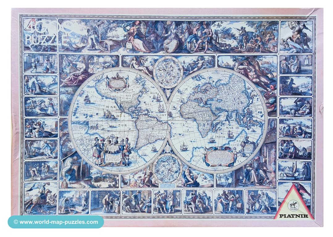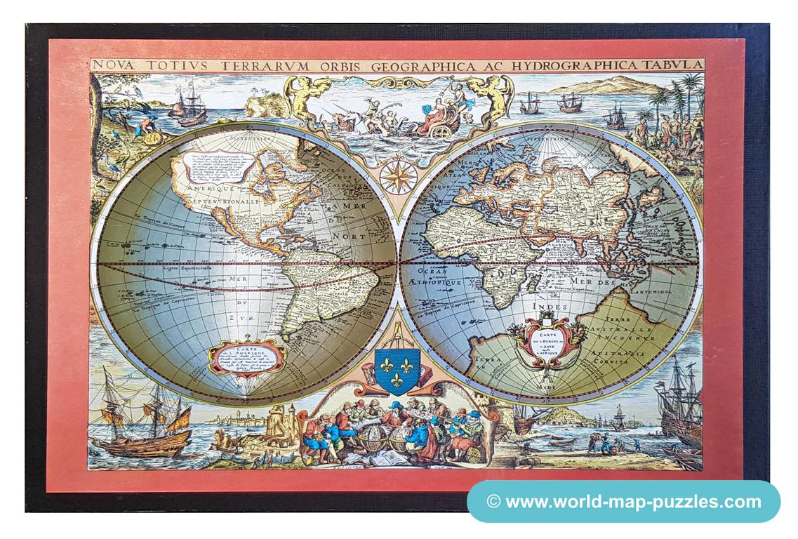 A private collection of modern jigsaw puzzles showing an antique world map.