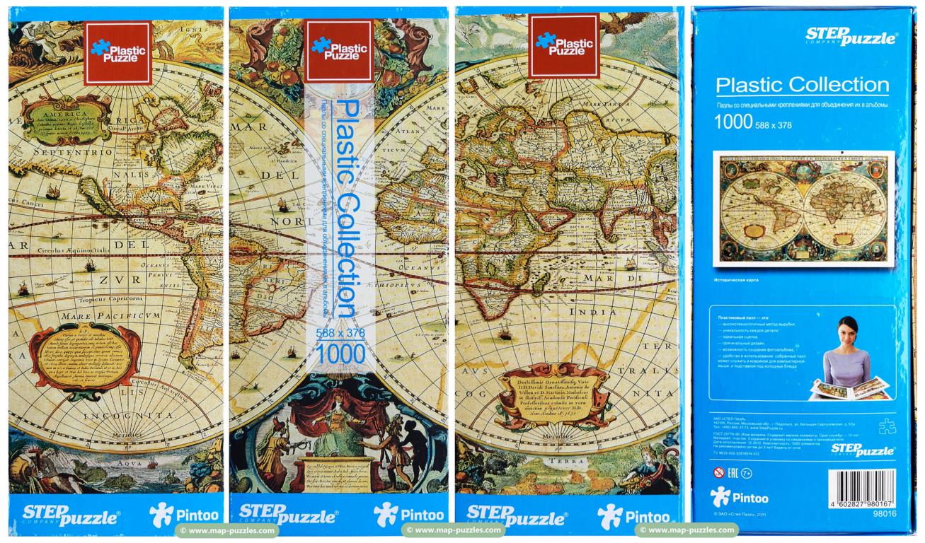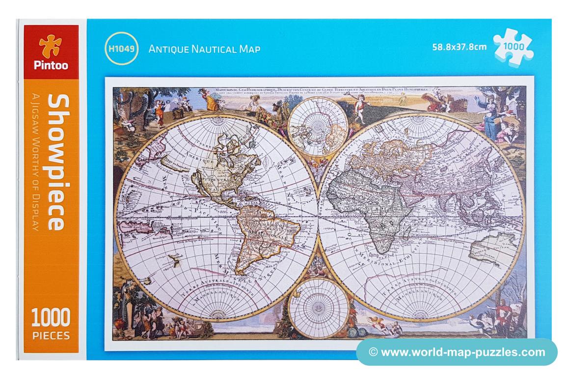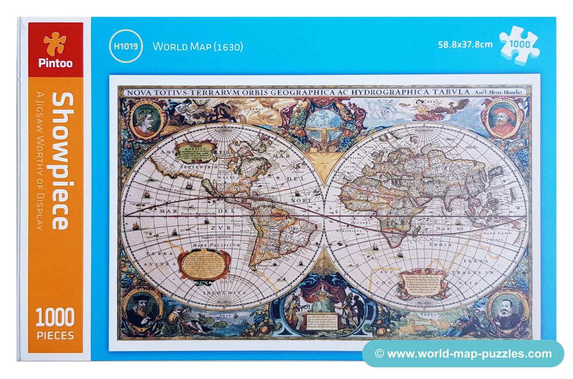 A private collection of modern jigsaw puzzles showing an antique world map.