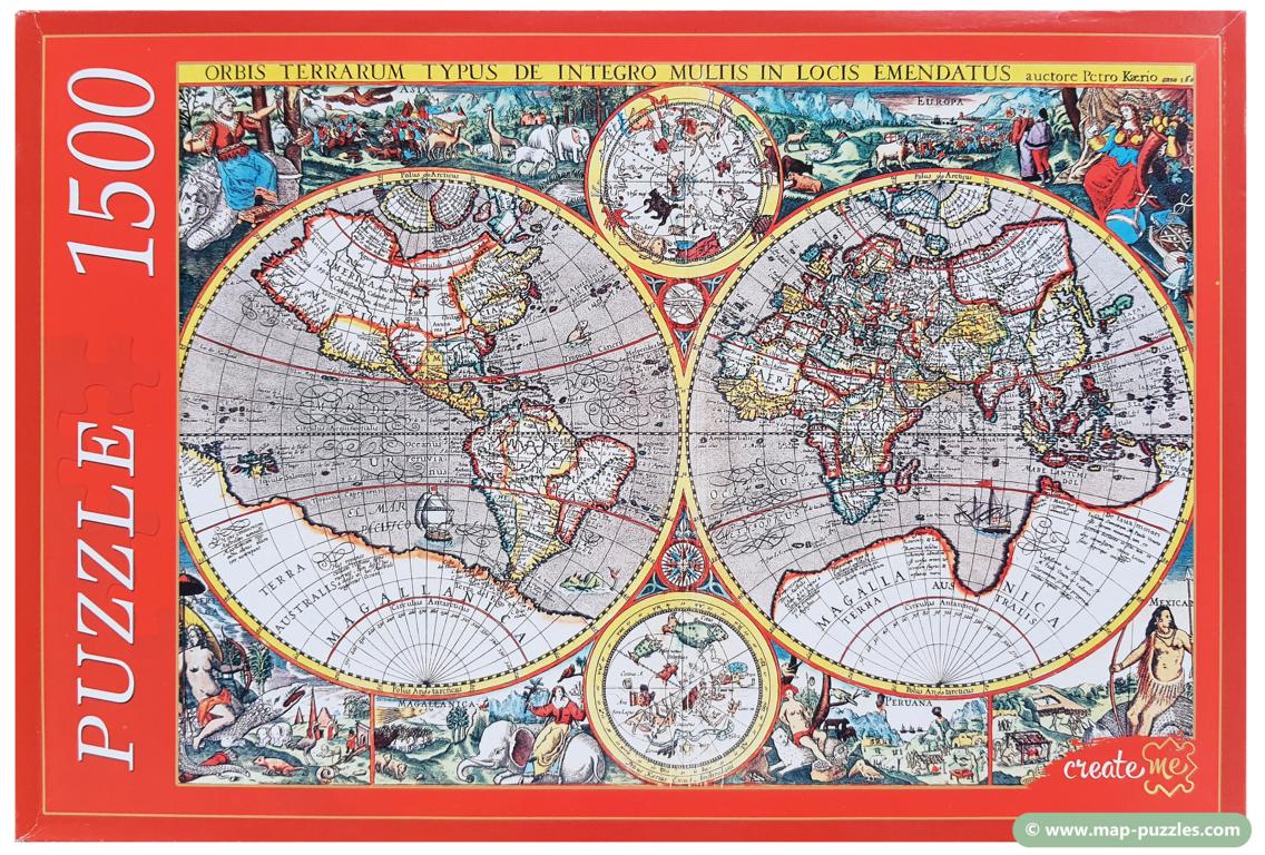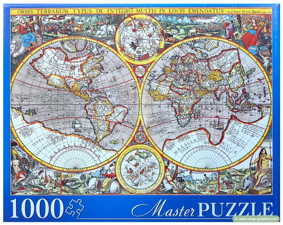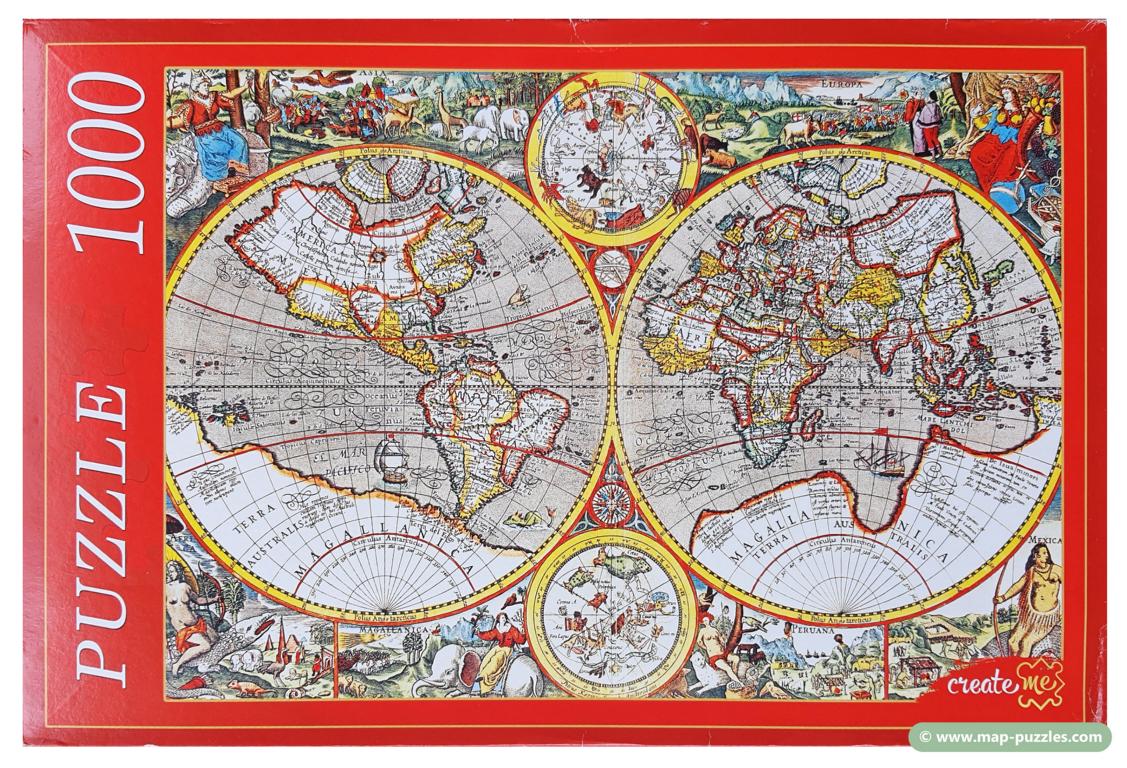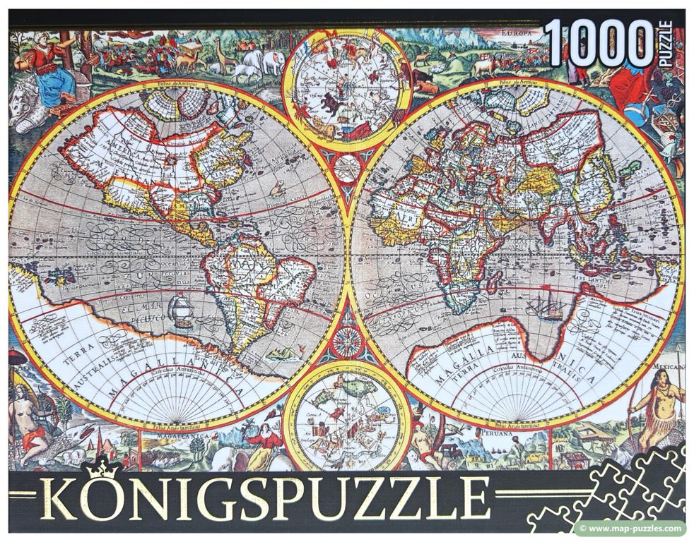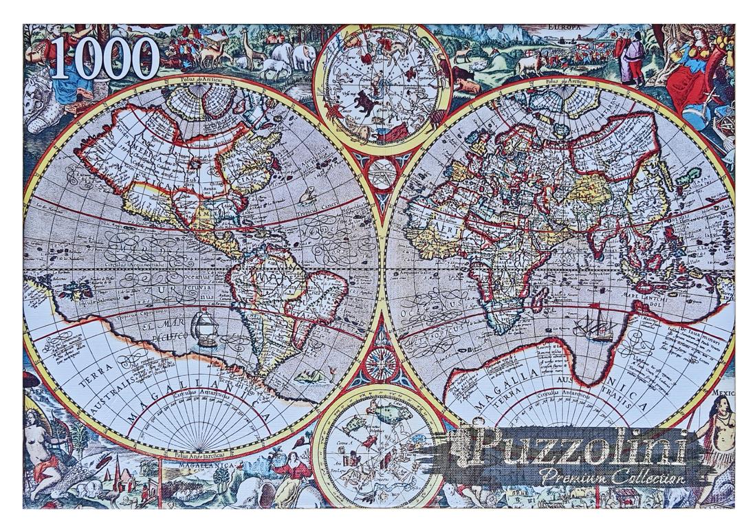 A private collection of modern jigsaw puzzles showing an antique world map.