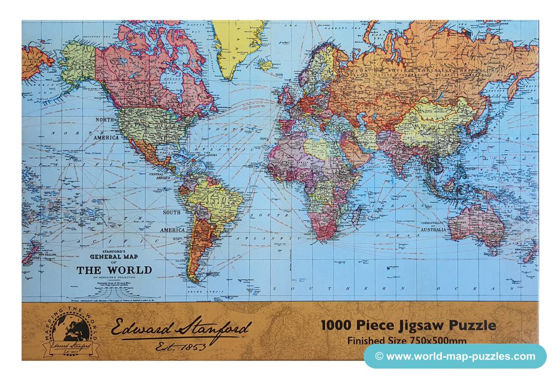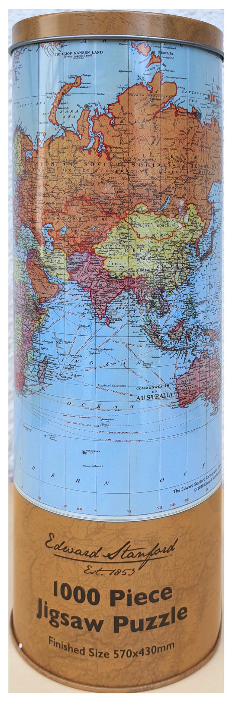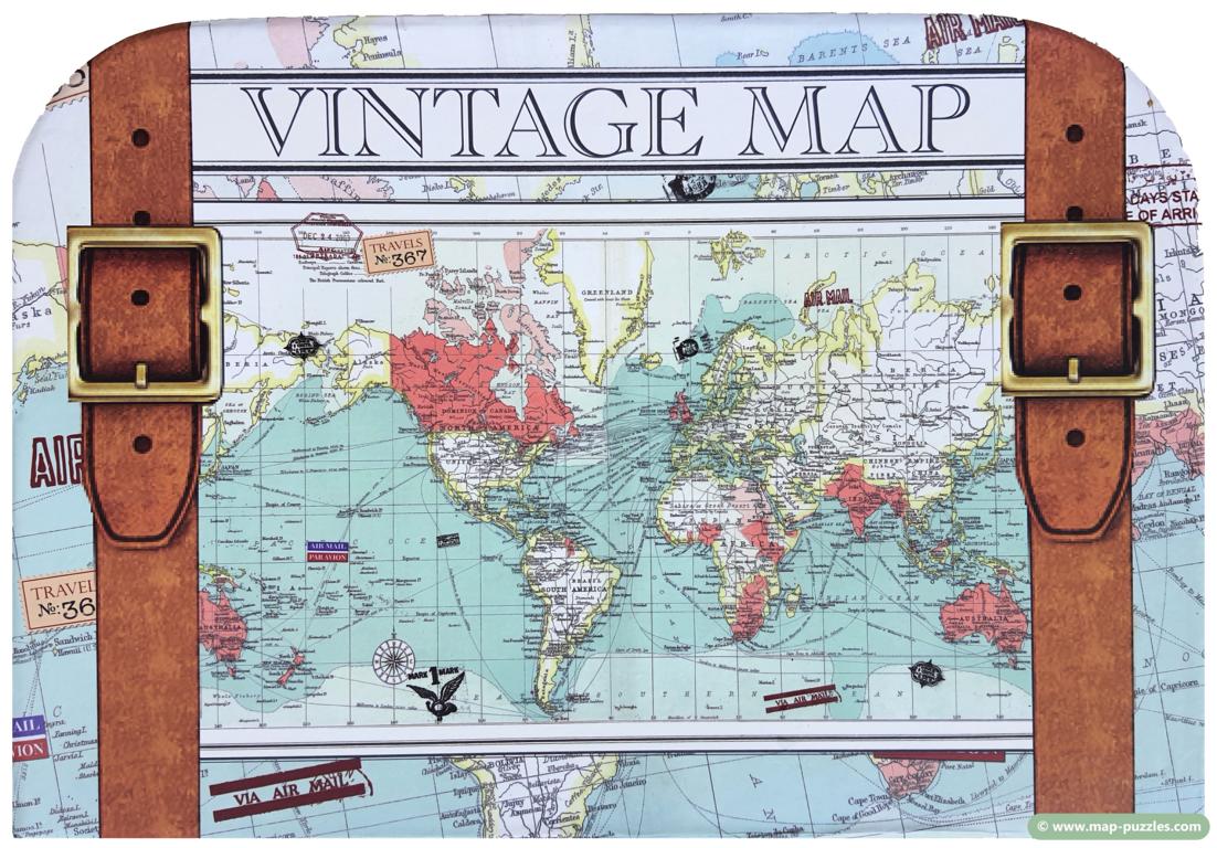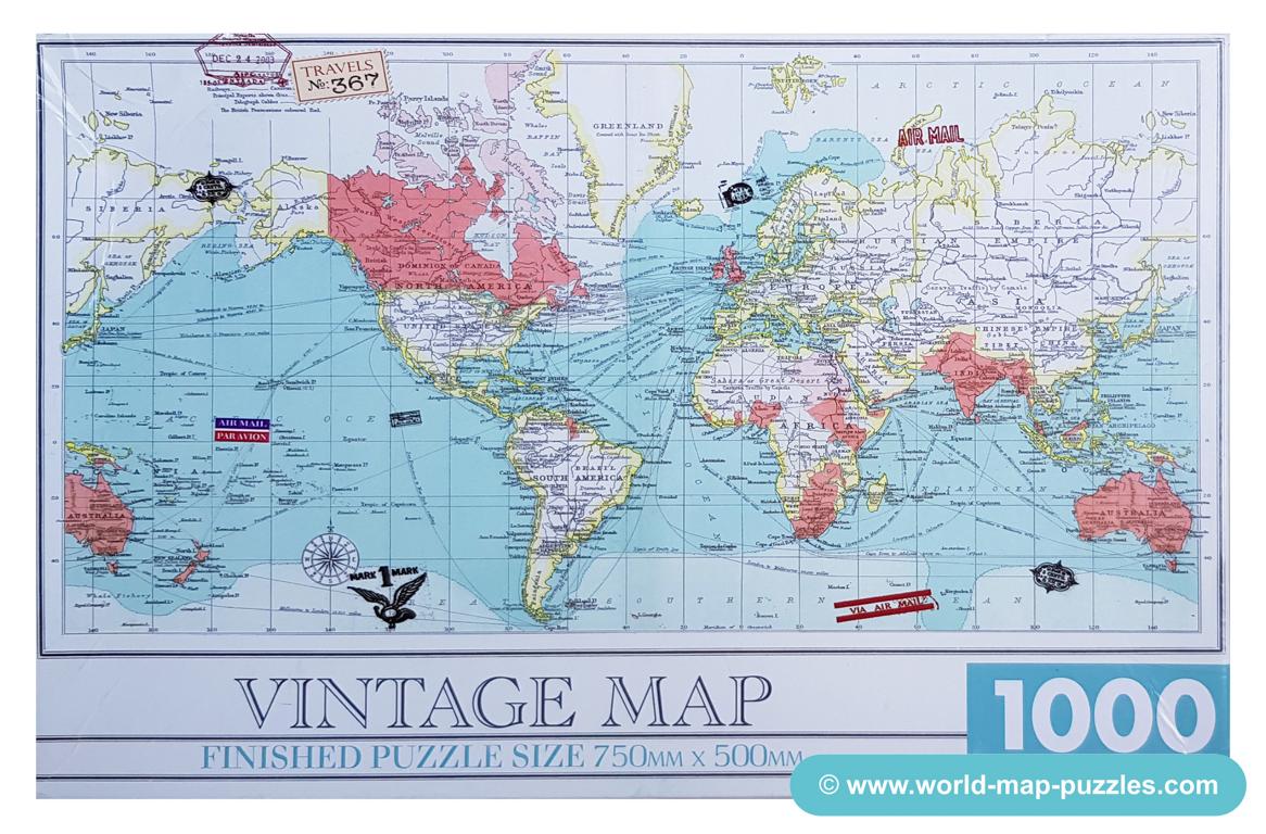 A private collection of modern jigsaw puzzles showing an antique world map.