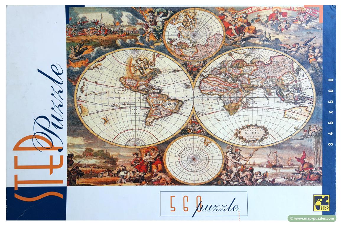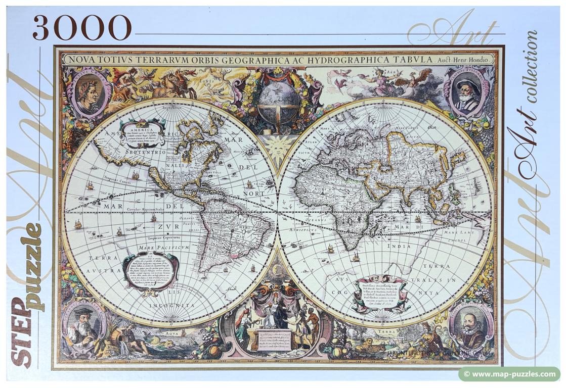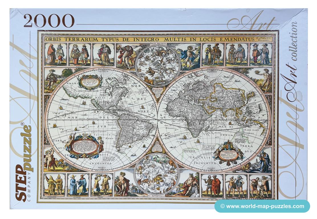 A private collection of modern jigsaw puzzles showing an antique world map.