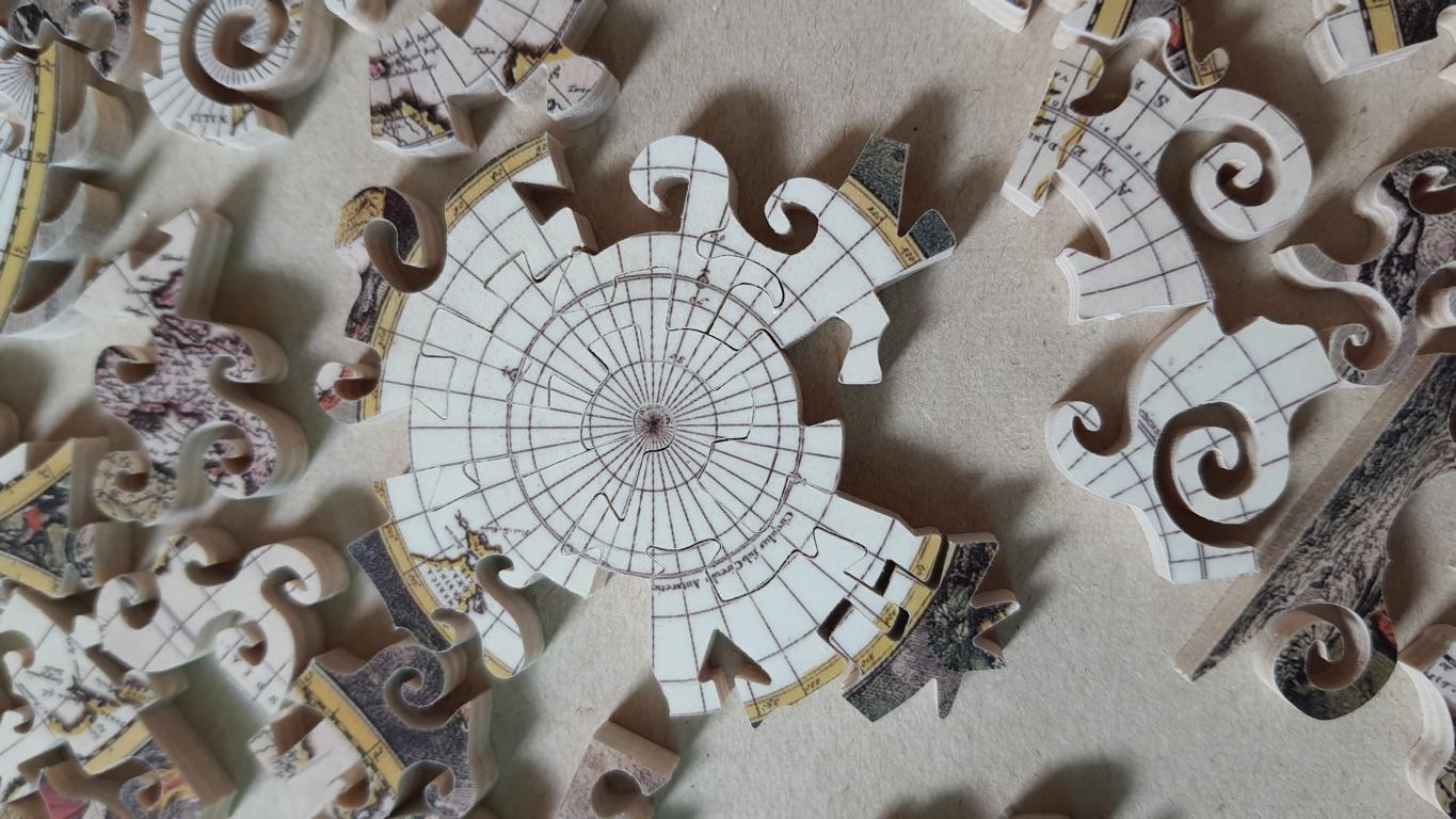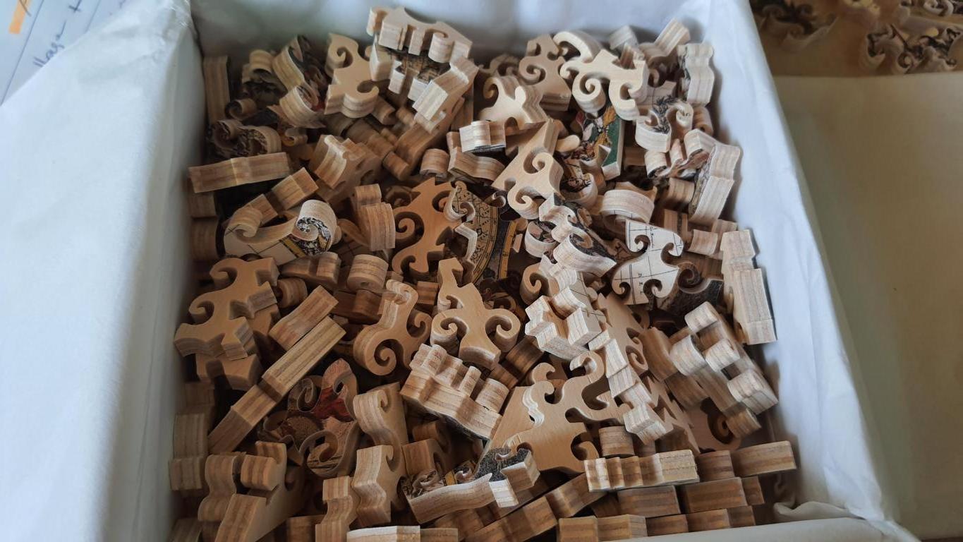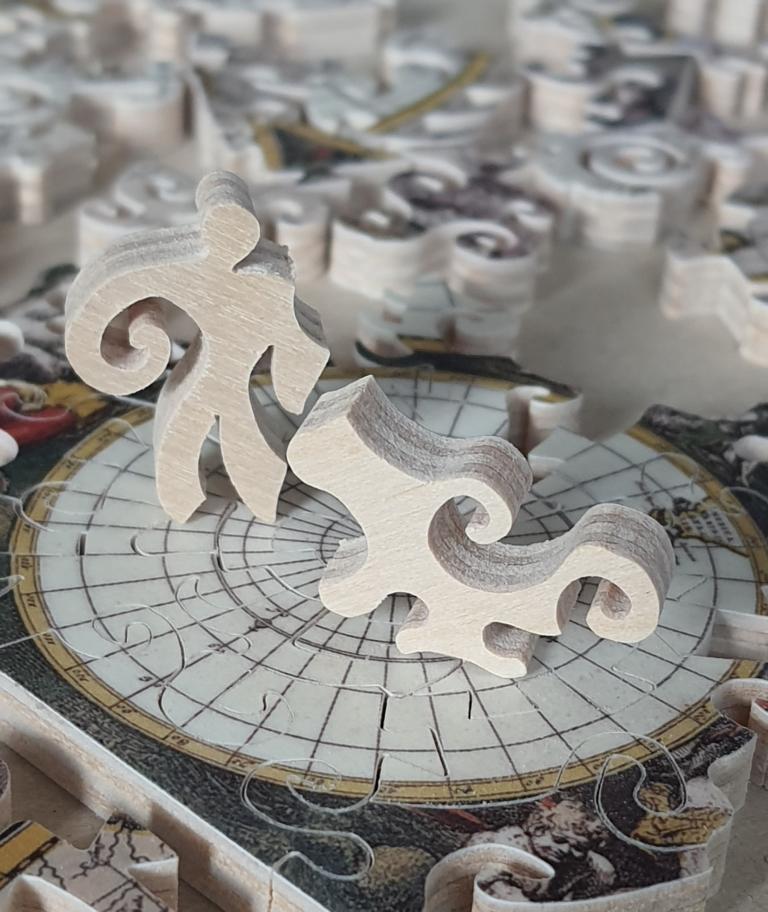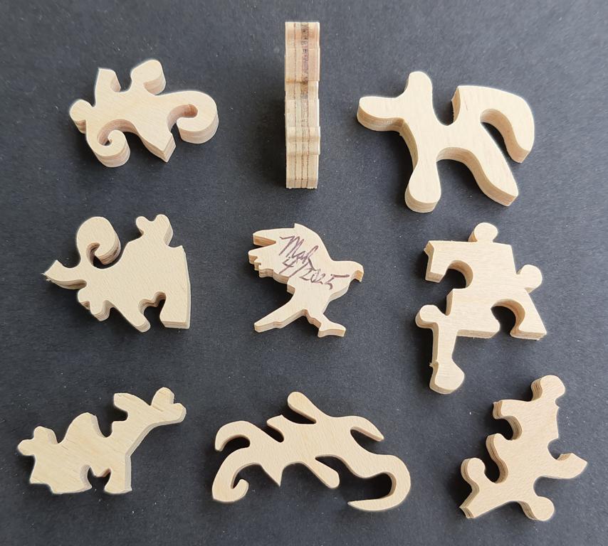 From his website: „As happened to many of us I went down the rabbit hole called the internet and came upon a story of wooden jigsaw puzzles. I couldn’t believe what I was seeing! These were NOT the cardboard row and columns puzzles I recall. These were fascinating pieces with odd shapes and sometimes even pieces cut in the shape of objects.