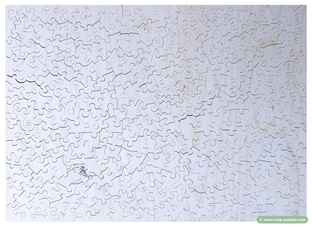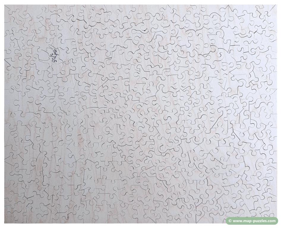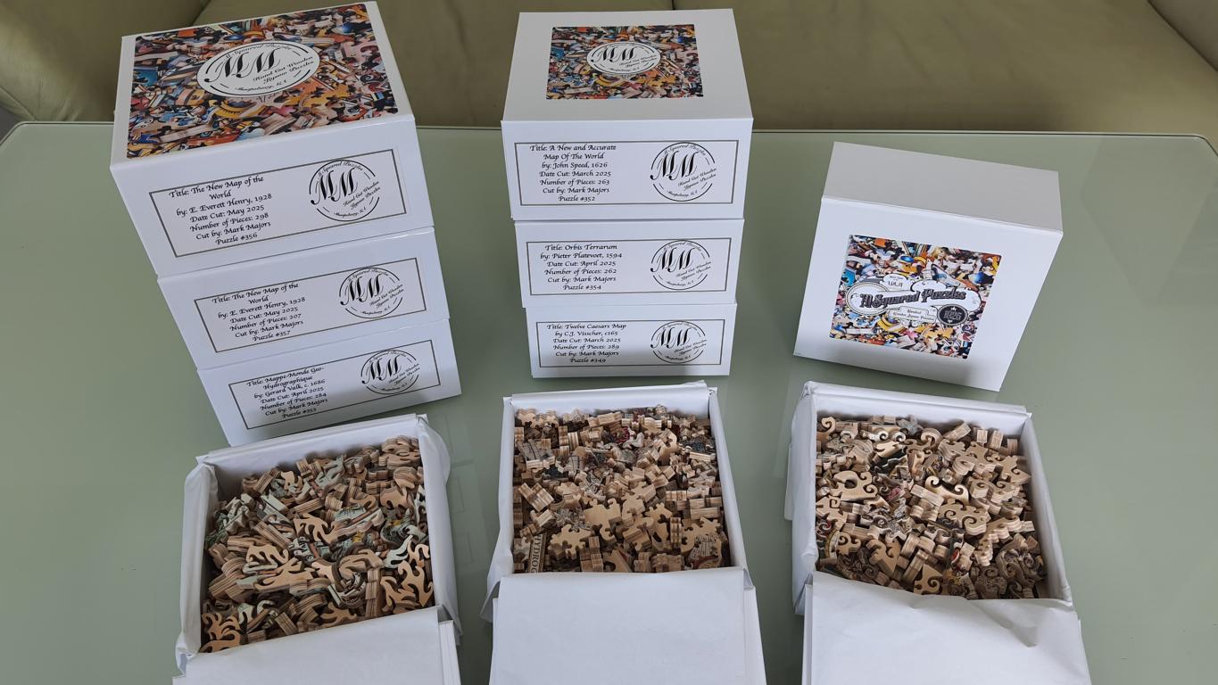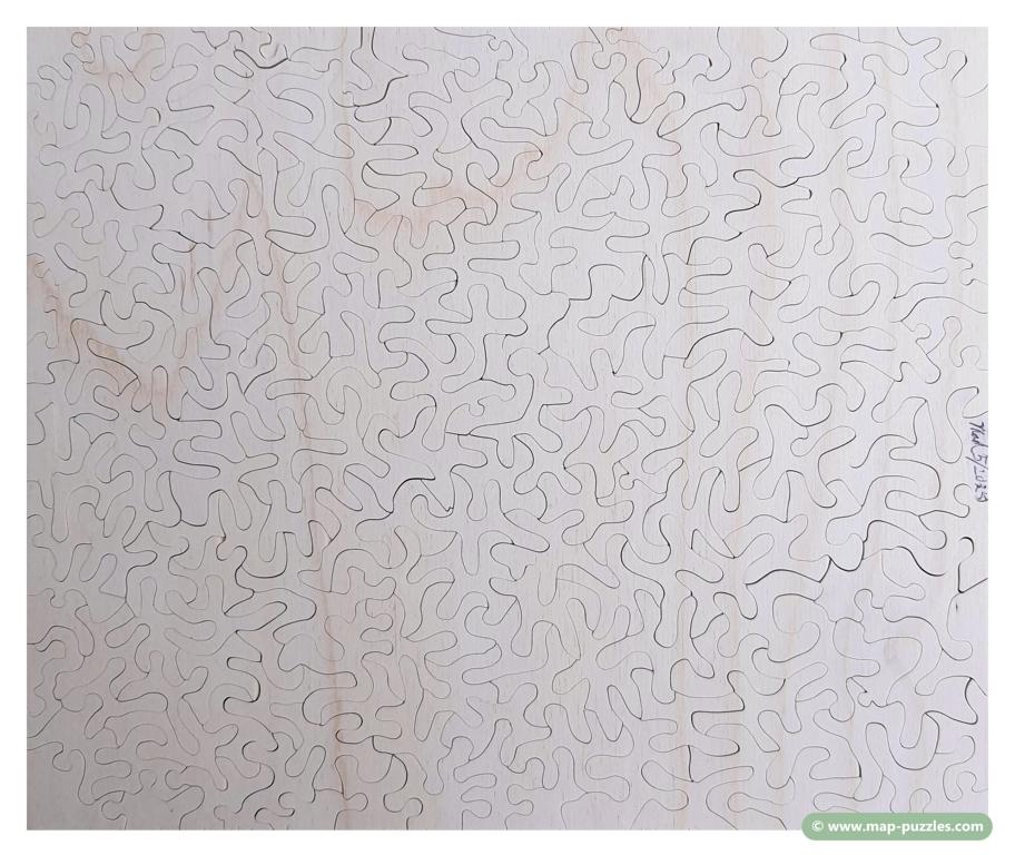 From his website: „As happened to many of us I went down the rabbit hole called the internet and came upon a story of wooden jigsaw puzzles. I couldn’t believe what I was seeing! These were NOT the cardboard row and columns puzzles I recall. These were fascinating pieces with odd shapes and sometimes even pieces cut in the shape of objects.